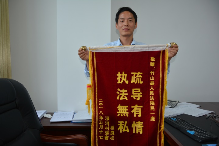 為了表達對承辦法官的感謝之情,程某和村委會相約共同制作一面錦旗送至竹山法院,于是出現了文中開頭的那一幕。