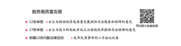 服務防范化解金融風險。出臺司法解釋,依法懲治操縱證券期貨市場、內幕交易犯罪。會同人民銀行、銀保監會、證監會推進金融糾紛多元化解,依法保護投資者、金融消費者合法權益。為設立科創板并試點注冊制改革制定司法保障意見,服務資本市場基礎性制度改革。北京、上海等地法院有序推進“e租寶”等涉互聯網金融案件清償工作,依法參與涉金融風險重大案件處置。云南等法院依法審理“泛亞有色”等非法集資案件,積極追繳處置涉案財產,努力幫助群眾挽回損失。上海金融法院創新證券糾紛示范判決機制,探索中小投資者司法保護新路徑。