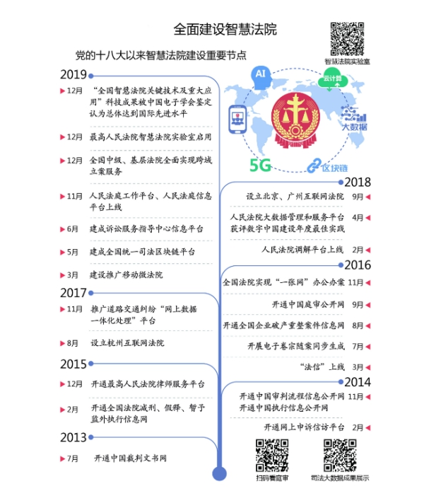 推動大數據、區塊鏈等技術深度應用。深化司法大數據應用,完成專題報告806份,為治理高空拋物墜物、保護婦女兒童權益等提供參考。建成全國統一司法區塊鏈平臺,創新在線存證方式,推動解決電子證據取證難、存證難、認證難問題。在執行中應用區塊鏈智能合約技術,提高執行規范化水平。推廣庭審語音識別、文書智能糾錯、“法信”智能推送等應用,為法官辦案、群眾訴訟提供智能輔助。
