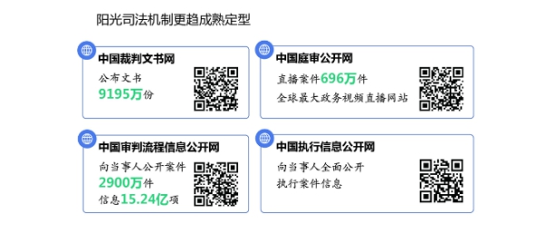 深化陽光司法。截至今年4月,中國裁判文書網公布文書9195萬份,中國審判流程信息公開網向當事人公開案件2900萬件,公開信息15億項,讓公平正義經得起圍觀。中國庭審公開網直播案件696萬件,觀看量237億人次,在線旁聽庭審成為群眾尊法學法守法用法新平臺。經過多年實踐,開放動態透明便民的陽光司法機制更趨成熟定型,豐富發展了社會主義法治文明。