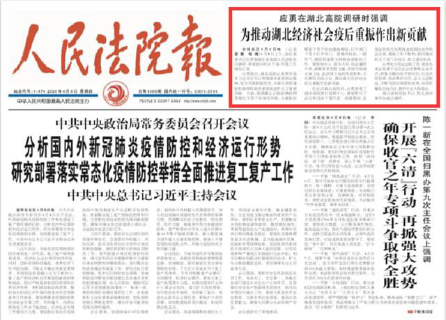 頭版聚焦 |應勇在湖北高院調研時強調 為推動湖北經濟社會疫后重振作出新貢獻