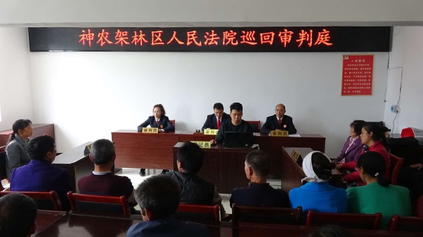 4月12日,神農架林區法院木魚法庭和宋洛法庭組成的巡回法庭冒雨來到下谷鄉三股水村,借用村委會會議室公開審理并當庭宣判一起健康權糾紛案件。庭審過程中,旁聽區內座無虛席,三股水村100余名村民參加了旁聽。