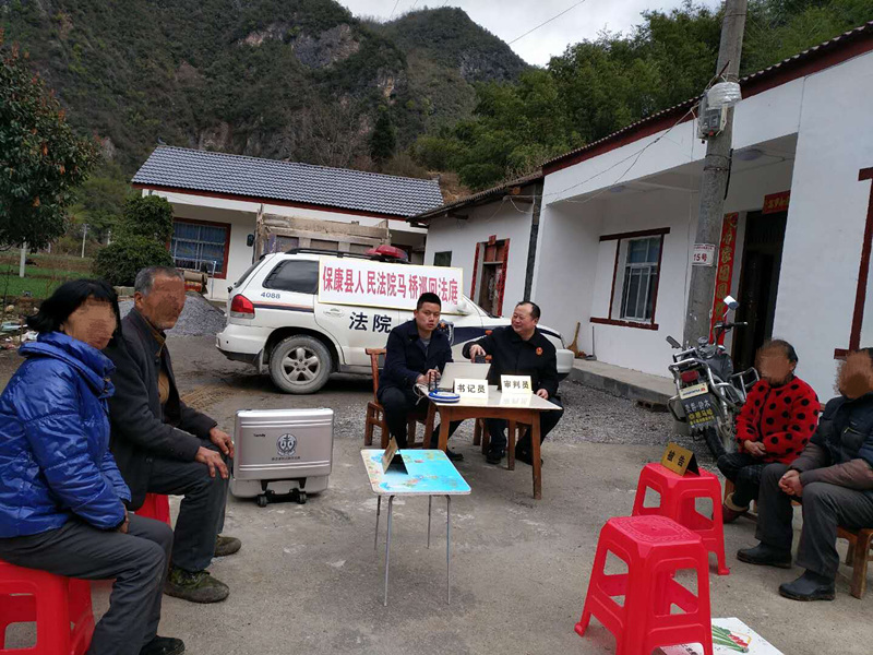 “保康縣人民法院馬橋法庭巡回審判法庭現在開庭!”近日,??悼h人民法院馬橋法庭在馬橋鎮古泉溝村村民劉某家門口公開審理一起土地糾紛案件,附近村民紛紛前來旁聽。