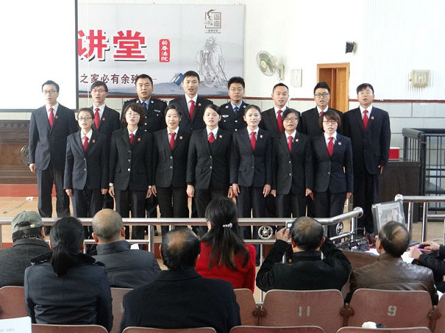 “我是中華人民共和國(guó)法官,堅(jiān)決擁護(hù)憲法,永遠(yuǎn)忠于法律……”在趙萬(wàn)平院長(zhǎng)帶領(lǐng)全體干警宣讀莊嚴(yán)的法官誓詞中,道德講堂正式開(kāi)講。接著大家合唱了鏗鏘有力的《人民法官之歌》,誦讀了古代經(jīng)典名句,該活動(dòng)學(xué)習(xí)了常年帶病堅(jiān)持基層工作,愛(ài)崗敬業(yè)的典范蘄州法庭法官?gòu)堄灼婧?3年不棄病夫,用真愛(ài)譜寫(xiě)承諾的孝老愛(ài)親的典范審監(jiān)庭女法官胡小英的感人事跡,大家觀看短片、講述故事、暢談感悟、三省吾身,用身邊模范的力量激勵(lì)著全體干警自覺(jué)樹(shù)立立黨為公、執(zhí)政為民意識(shí),做孝老愛(ài)親、愛(ài)崗敬業(yè)的典范。